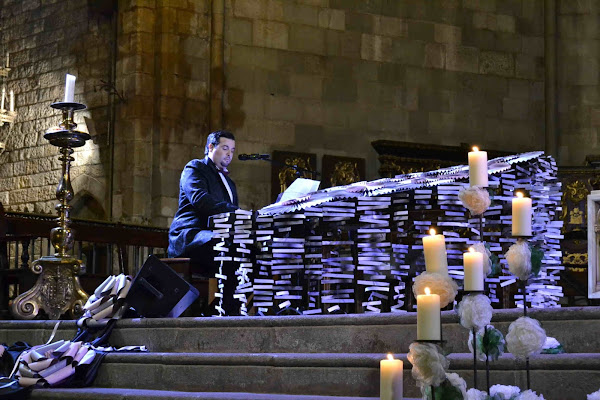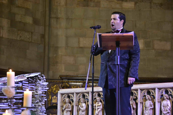 Esa noche, la voz del Baritono Haythem Hadhiri y las notas musicales del Pianista Rober Bonet envolvieron la magistral nave del siglo XIV.