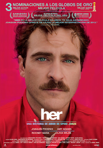 La apuesta argumental y técnica de “Her” es realmente espectacular, ya que parte de la idea básica de un enamoramiento, pasando por casi todas sus fases (descubrimiento, conocimiento, confianza, intimidad sexual, desconfianza, celos, incomunicación, etc,), aunque, a la vez innovando brutalmente, ya que este enamoramiento se produce entre un hombre real y un sistema operativo dotado de inteligencia artificial en un tiempo, seguramente no muy lejano al actual.