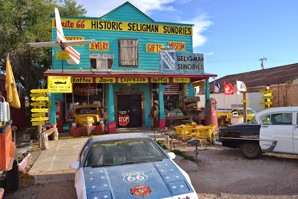 Con las pilas bien cargadas, reanudamos nuestro viaje por "la calle principal de América" en dirección a Seligman (pueblecito en el cual se inspiraron para hacer la película de Pixar "Cars"), no sin antes hacer otra parada, esta vez en Hackberry General Store, un mítico y genuino lugar repleto de curiosidades, casi, casi como un museo de viaje de la vieja Ruta 66, en el que aprovechamos para comprar algún que otro souvenir y al que recomiendo encarecidamente entrar a todo aquel que esté de paso.