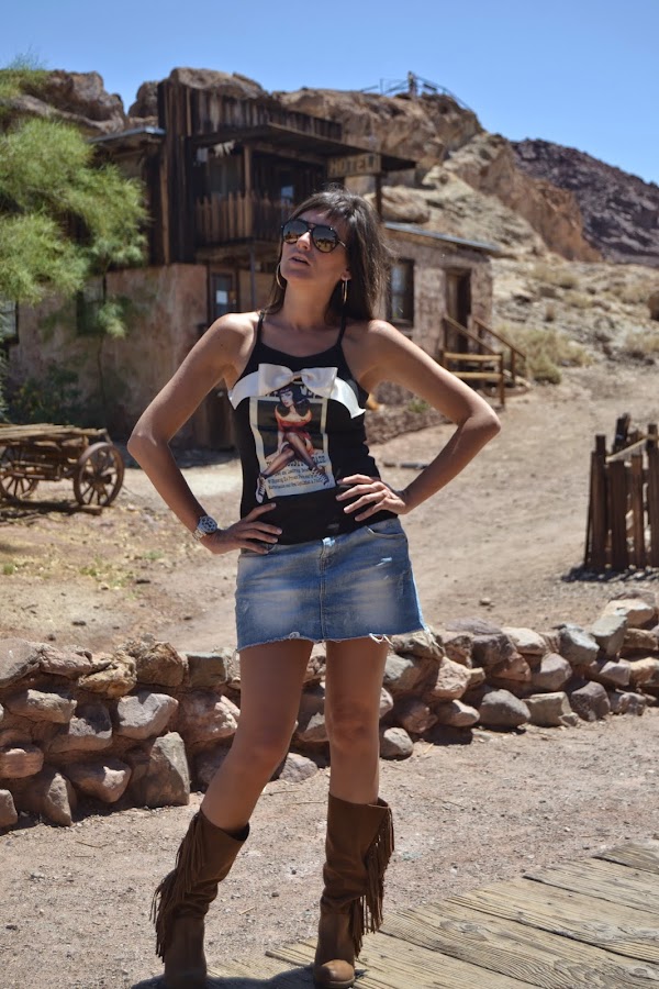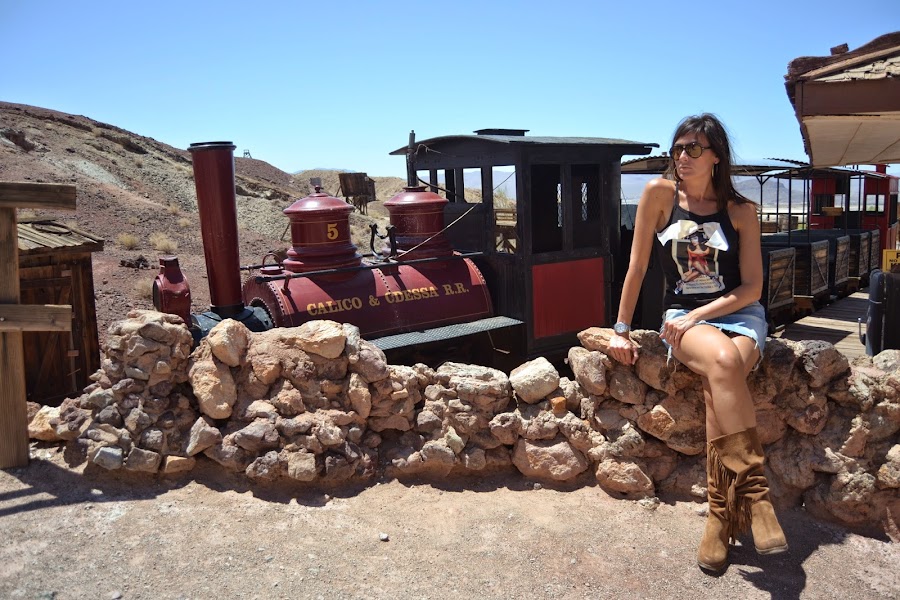 Nuestra primera parada del día fue en Calico Ghost Town, en Yermo (California), cerca de Barstow, en el condado de San Bernardino, a las puertas del desierto de Mojave (a unas 2 horas en coche de nuestro punto de partida); un antiguo pueblo minero del oeste fundado en 1881 tras la aparición de unas minas de plata y convertido en la actualidad en "puebo fantasma" y atracción turística que nos brindó la oportunidad de compartir su rica historia y disfrutar de la belleza natural del entorno del desierto circundante.