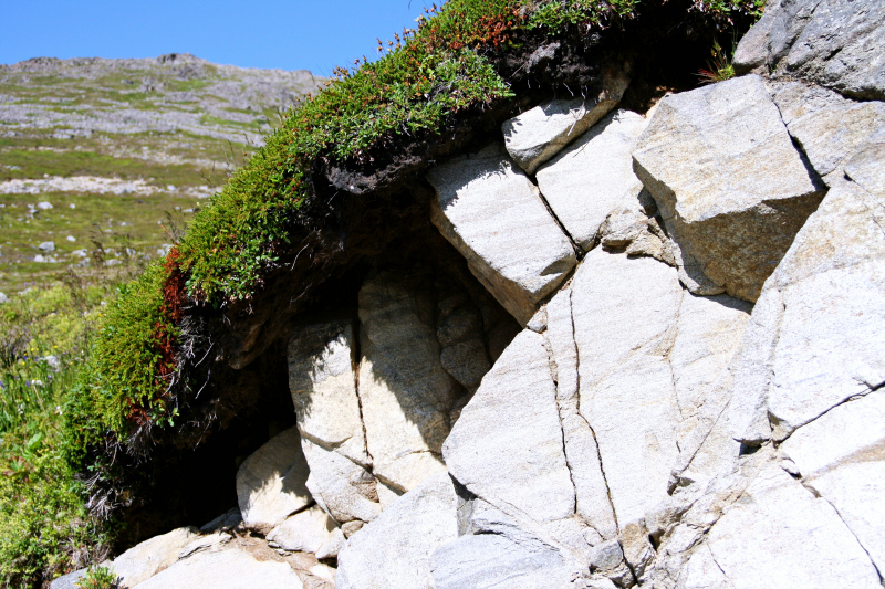 la pequeña pero frondosa capa de suelo está directamente sobre la roca madre.