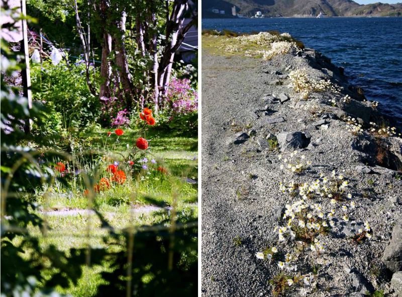 Por latitud, la vegetación es tipo tundra y en algunos lugares puede verse como
