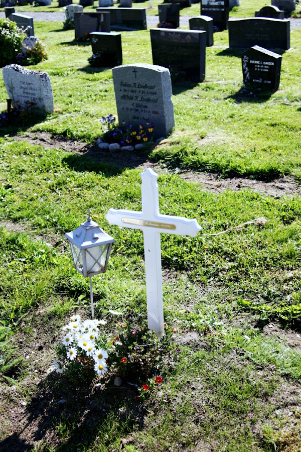 En el pequeño cementerio de la iglesia, también flores plantadas en las