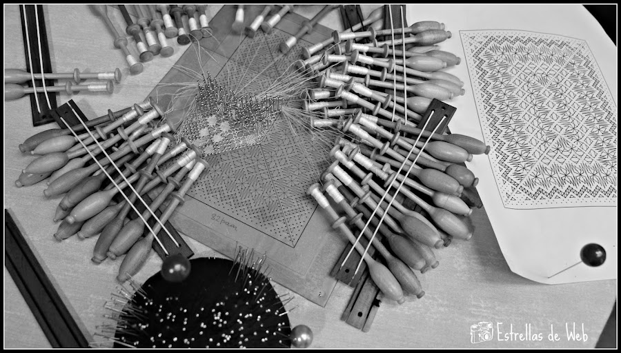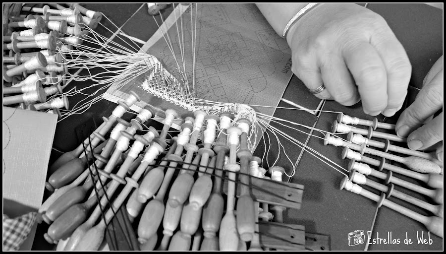 Me ha encantado reflejar estas fotografías con artesanía del encaje de bolillos en blanco y negro, ya que este tipo de labores se realizaban en los años que únicamente existía la fotografía en blanco y negro.