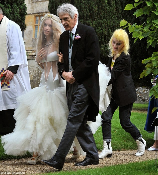 [ Lady Mary Charteris con un diseño de Pam Hogg para su boda con Robbie Furze ( septiembre, 2012 ) ]