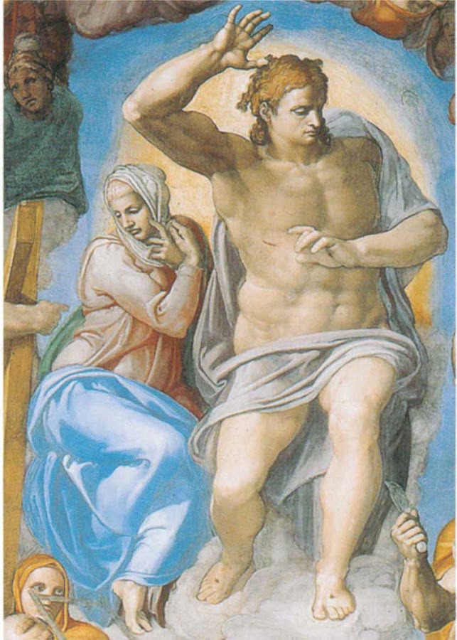 En 1547 falleció Vittoria y tal era el afecto que Miguel Ángel le profesaba que recuperó el cuadro y la incluyó como María Magdalena abrazada a la cruz de Cristo y sobre los hombros un pañuelo símbolo de su viudedad.