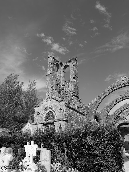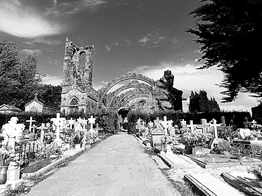 Situada en el cementerio con la que comparte nombre, es una iglesia gótica construida en el siglo XV sobre una edificación románica del siglo XII. Declarada monumento Histórico-Artístico nacional, su estado en ruinas se debe a un incendio que sufrió en el siglo XIX.