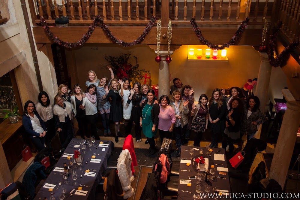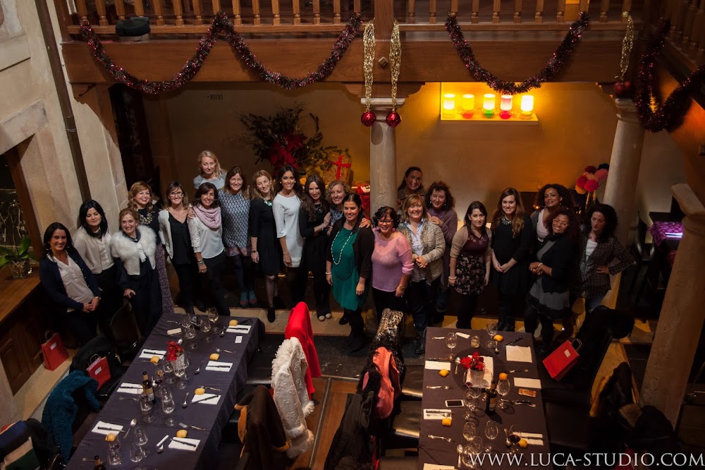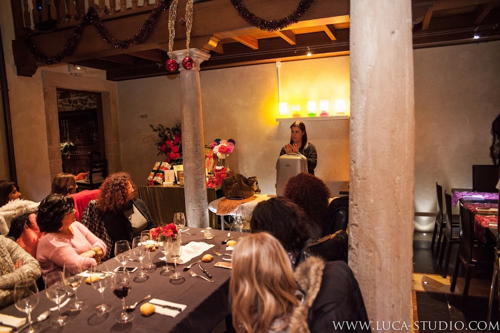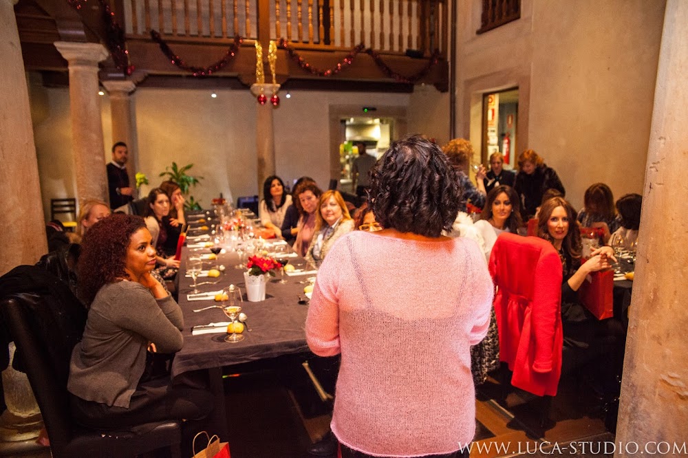 La cena (exquisita, todo sea dicho de paso), fue precedida por los consejos y el asesoramiento en áreas relacionadas con la belleza y el bienestar femenino, la moda y el estilo de vida, por parte de sus organizadoras, de quienes os hablaré más adelante (tres de ellas en la siguiente imagen), cada una en su respectivo campo que, previamente nos habían recibido en el patio interior del local (como buenas anfitrionas que son) y obsequiado con unas bolsitas que habían preparado especialmente para nosotras con mucho mimo y que contenían, desde tarjetas regalo hasta descuentos, pasando por muestras y catálogos de sus centros de trabajo.