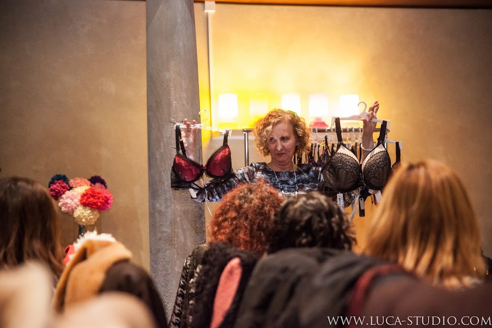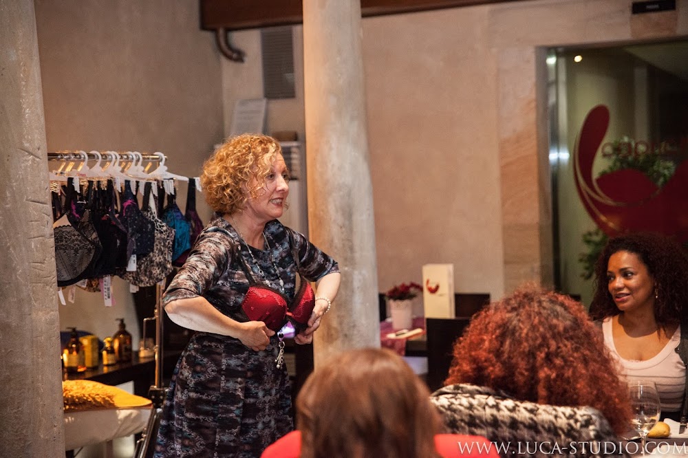 A continuación, le llegó el turno a mi amiga, la asesora de corsetería, Celia López, de Pespuntes Moda Íntima (a quien le agradezco que me invitara a ser partícipe de esta "noche de chicas") que nos facilitó los trucos para encontrar el sujetador perfecto, en base a la talla, la copa y el corte, concienciándonos de la importancia de llevar el sostén adecuado, no sólo por razones de estética sino también por salud. Incluso se atrevió con una exhibición de cómo debía de colocarse correctamente.