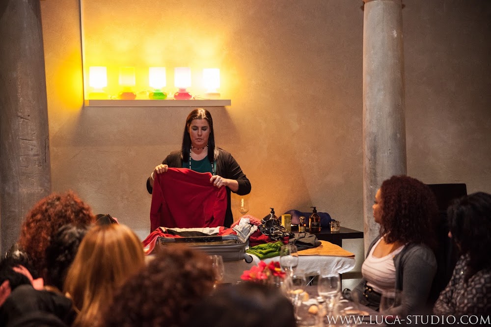 Por último, Noemí González Vega, la tercera generación en la familia al frente del mítico establecimiento de maletas, bolsos y accesorios de piel para hombre y mujer (carteras, monederos, guantes, cinturones...) El Caballo, uno de los más antiguos de Gijón, nos comentó las tendencias en complementos y nos facilitó las claves para aprender a hacer una maleta de tal forma que en una de cabina cupiese lo necesario para un viaje de una semana (algo impensable para mi hasta la fecha, que siempre me veía obligada a facturar el equipaje), simplemente aprovechando bien el espacio y rellenando todos los huecos.