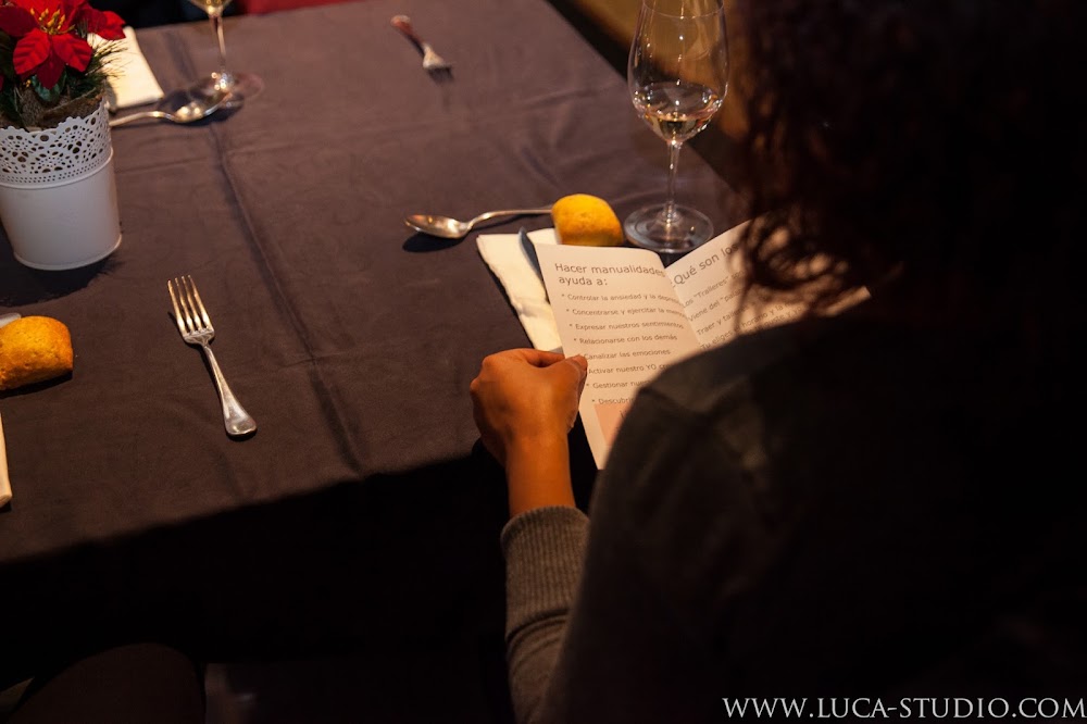 Una vez hechas las presentaciones oficiales (si bien es cierto que muchas de nosotras ya nos conocíamos), la velada comenzó con las explicaciones por parte de Mariví Pastrana, editora del blog Diario de Trana, acerca de los "Tralleres" creativos que imparte a domicilio y los beneficios de hacer manualidades.
