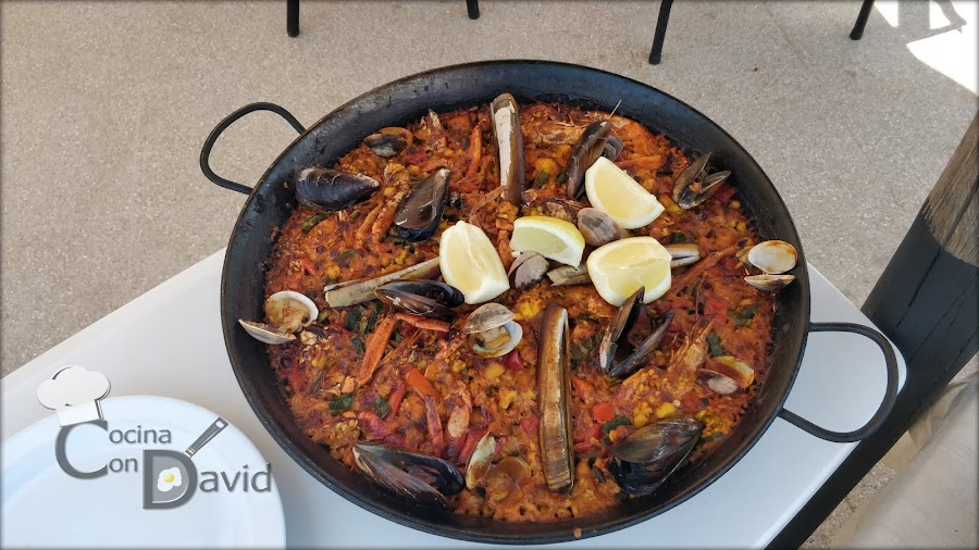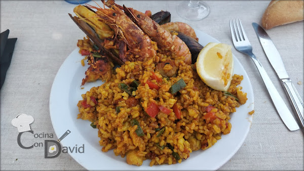 Pedimos la "paella marinera" entre todos los arroces que tenían. Un arroz lleno de pescado y marisco, donde encontrabas navajas, mejillones, almejas, patas de cangrejo, langostinos, pescados...