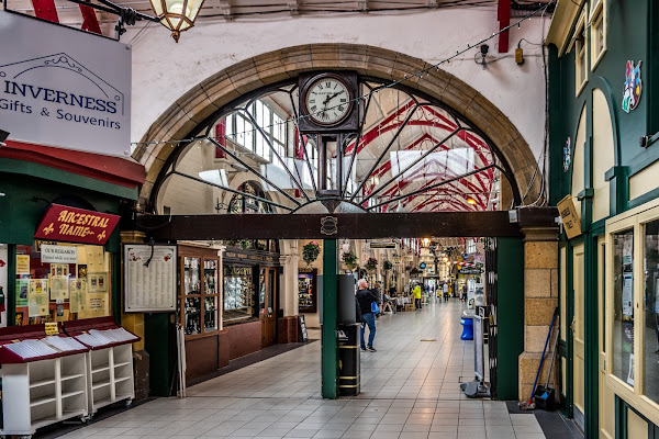 Construido en 1870, fue destruido por el fuego en 1889 y reconstruido posteriormente, pero aun queda original la impresionante puerta de arcadas que tenemos en la foto y la otra puerta posterior, ambas construidas en piedra. Es un mercado techado con cafeterías, peluquerías, floristerías, artesanía, y también, tiendas de pescado fresco y carne, típico de la época victoriana. Una delicia pasear por su interior con su colorido y su techo sostenido por de arcos de hierro pintados en rojo.