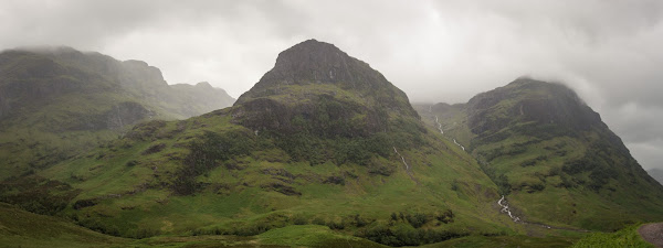Más adelante descubrimos el impresionante valle de Glencoe, conocido por el "valle de las lágrimas", con sus más famosas montañas, las Tres Hermanas, y que guarda la trágica historia de la masacre que sufrió el clan MacDonalds a manos de las tropas del Rey de Escocia, Guillermo de Orange, por no haberle presentado juramento de lealtad en la fecha establecida, del 1 de Enero de 1692.