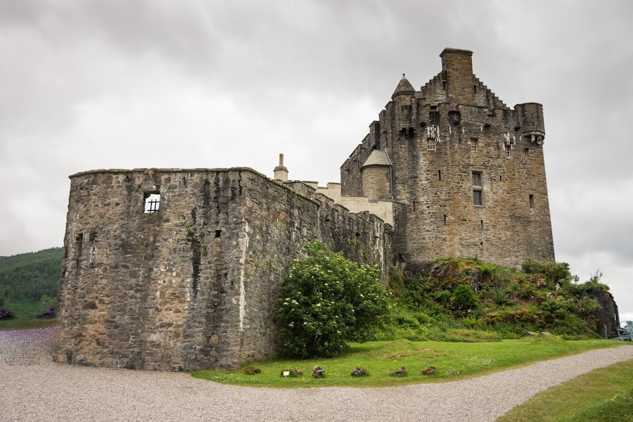 El castillo está situado en una pequeña isla en el lago Duich con un único acceso mediante un estrecho puente de piedra, lo que le permitía ser una una poderosa fortaleza muy difícil de tomar. Fue comenzado a construir en 1220 como defensa frente a las incursiones vikingas. Se dice que fue uno de los refugios utilizados por Robert the Bruce cuando huía de las invasiones inglesas de Eduardo I. Posteriormente el castillo se convirtió en residencia del clan MacRae antes de quedar abandonado poco después de la unión entre Escocia e Inglaterra.