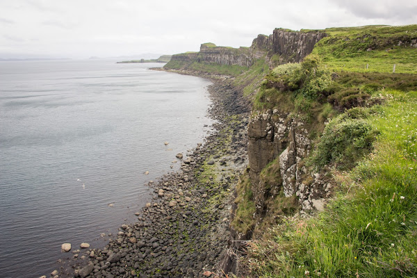 El segundo atractivo son los acantilados en los que podemos ver perfectamente los pilares de basalto que encontraron los vikingos y por lo que dieron el nombre de Staffin a toda esta zona, como decía anteriormente.