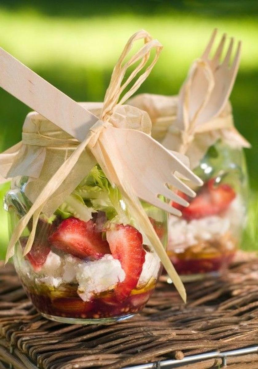 La comida es un elemento clave. Tenemos que evitar alimentos recién hechos que hayan de tomarse calientes o muy fríos (a no ser que se conserven bien en termos). Así como también evitar platos que deban tomarse con cuchillo y tenedor. ¿Lo ideal? Picoteo, sándwiches, tablas de quesos y embutidos, ensaladas en tarros, tartaletas, miniquiches…