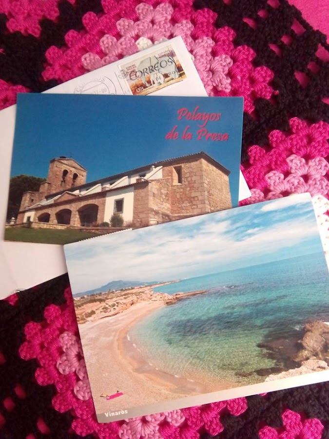 Primero me llegó la de Pelayos de la Presa, de Ester y hoy mismo he recibido la de Luisa desde Vinarós, las dos muy diferentes pero igual de bonitas. Para sus casas irán también sendas postales enviadas desde Vigo ^^ Si tú también quieres intercambiar una postal, ya sabes ¡pídeme un intercambio!
