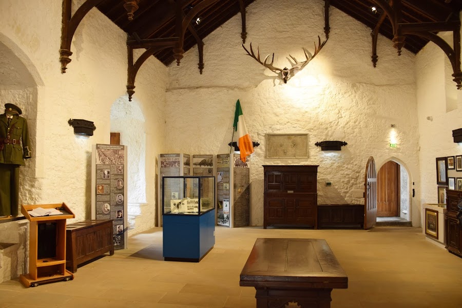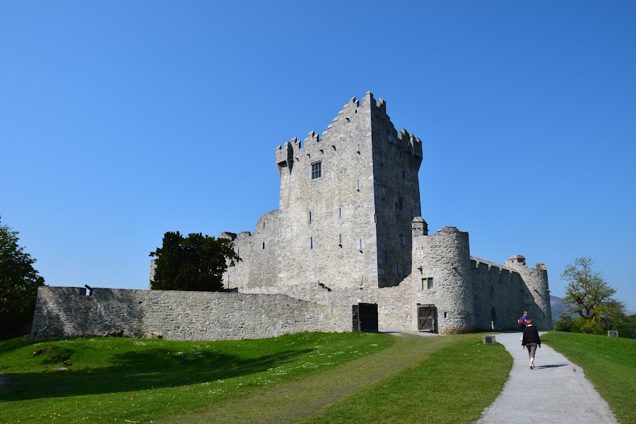 El castillo está construido en un pequeño promontorio que mira al lago, con un embarcadero del que parten excursiones en barca hasta la cercana isla de Innisfallen. Entramos y esperamos por una visita guiada que nos llevará desde la base de la casa-torre hasta su última planta. Por el camino vemos una recreación bastante acertada del aspecto que debió tener la fortificación en sus mejores años, y la guía nos explica cómo era la vida diaria de los señores y sus sirvientes.