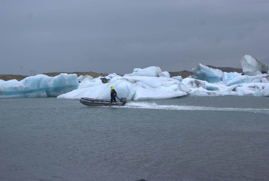 Todo esto y más es Jökulsárlón: para pasearlo en bote anfibio, en neumática o en motonieve, o como nosotros para disfrutar de los últimos días de los barcos helados que llegan a la desembocadura del río para morir en el mar....