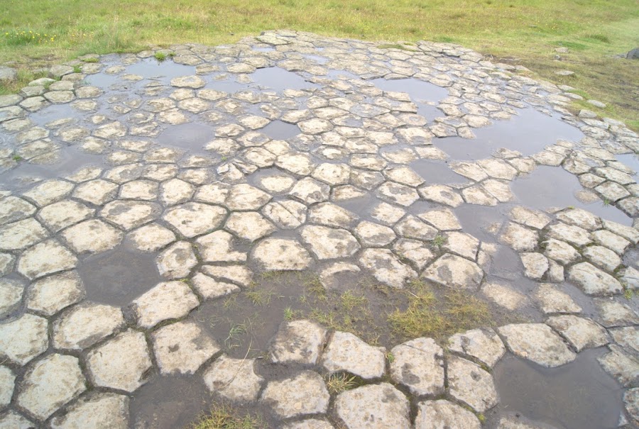 Leyendas aparte, no es difícil ver que los irregulares mosaicos que cubren el suelo, musgosos, cubiertos de agua y rodeados de hierba, son maravillosas obras de la naturaleza, formadas al enfriarse el magma en contacto con el agua, que lo comprime y le da una extraña forma hexagonal. Incluso hay una con diez lados que debemos descubrir en menos de un minuto, según cuenta la tradición.