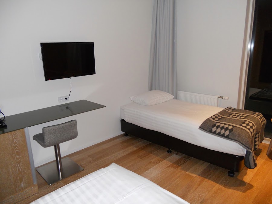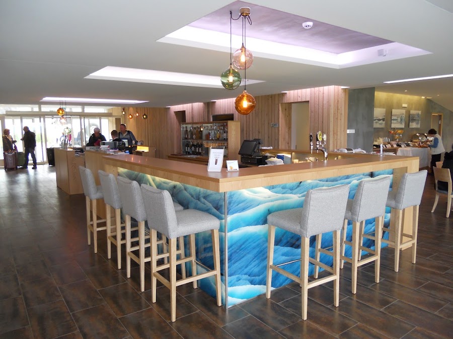 Pero dentro la cosa cambia, un espacioso hall que es el centro del hotel, da paso a un comedor a varias alturas donde se sirve un exquisito buffet de especialidades islandesas, como pescados en salmuera, embutidos varios y como no, la exquisita leche de la isla, por no hablar de una bollería sabrosa y recién hecha.