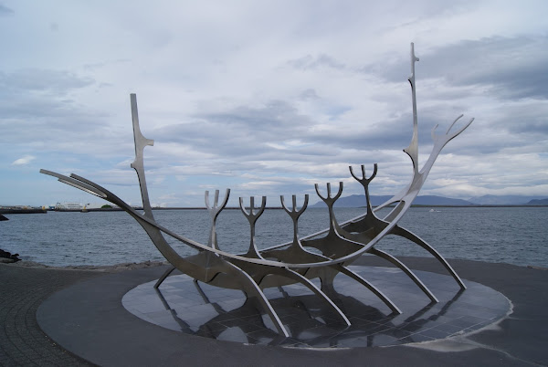 De entre todas destaca esta escultura "viva" de Árnason cuya forma de esqueleto de barco, atrae como un imán a propios y extraños, cautivándolos y haciendo que reflexionen y recuerden que los descendientes de aquellos fueron unos aventureros sin parangón en la historia de la Humanidad.
