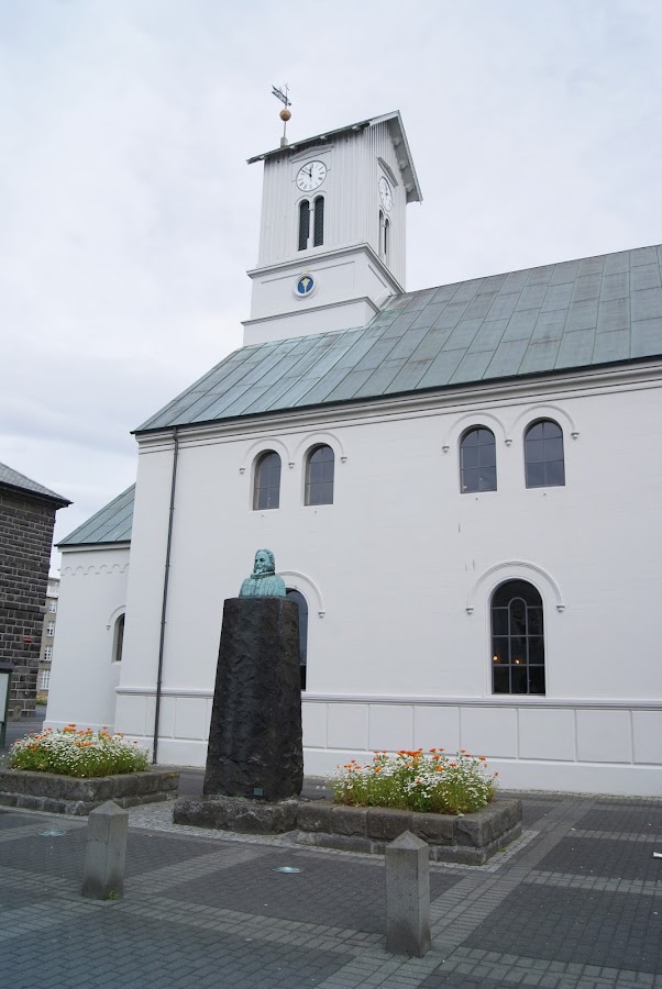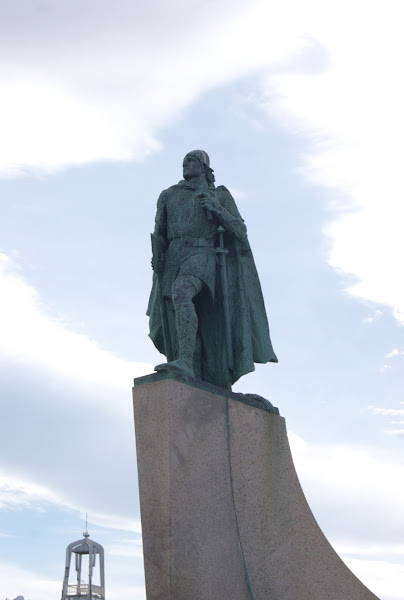 Frente a la iglesia se levanta un monumento a Leif Eriksson, hijo de Erik el Rojo, explorador vikingo a quien consideran el primer europeo que llegó a América, 500 años antes de Colón. La escultura es un regalo de América por los 1000 años de la fundación del parlamento islandés.