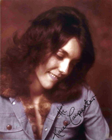 Nacida un jueves 2 de marzo de 1950, en la ciudad de New Haven, estado de Connecticut, Karen Anne Carpenter tenía una voz casi pura y sobre la que ejercía un dominio admirable. Su hermano, Richard, hacía los arreglos musicales que armonizaban perfectamente con la voz y creaban un sonido distintivo y único. Pero Karen no solamente tenía una voz privilegiada, sino también tocaba perfectamente la batería, algo bien inusual en esa época, donde era lo más normal asociar la batería con la fuerza masculina. apenas puso sus manos en la batería se enamoró de esta y no se separó jamás. Incluso su hermano Richard comentó en un aoportunidad que Karen no se consideraba una gran cantante, sino una baterista que podía cantar. Era su juguete preferido.