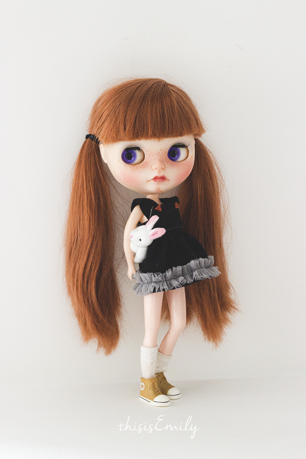 Ayer hice mi último examen y hoy han empezado oficialmente mis vacaciones, así que he aprovechado para hacer la primera sesión de fotos a Katniss. Los que me seguís por instagram, twitter o facebook ya la conocéis. Katniss es una pequeña Blythe Fake que ha estado conmigo este verano entre apuntes y apuntes. Su mami me dio plena libertad, solo me dijo una cosa: la quiero con pecas. Y aquí está esta pecosa con cara aniñada y melancólica.