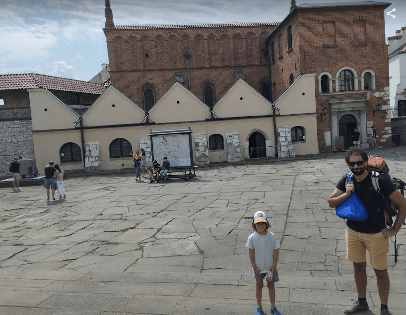 Con las mochilass a cuestas nos vamos a Kazimierz. Barrio mitad Judio, mitad Cristiano.