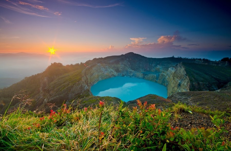 EN LA ISLA DE FLORES EN INDONESIA ENCONTRAMOS ESTE VOLCÁN CON TRES CRÁTERES DE DIFERENTE COLOR.