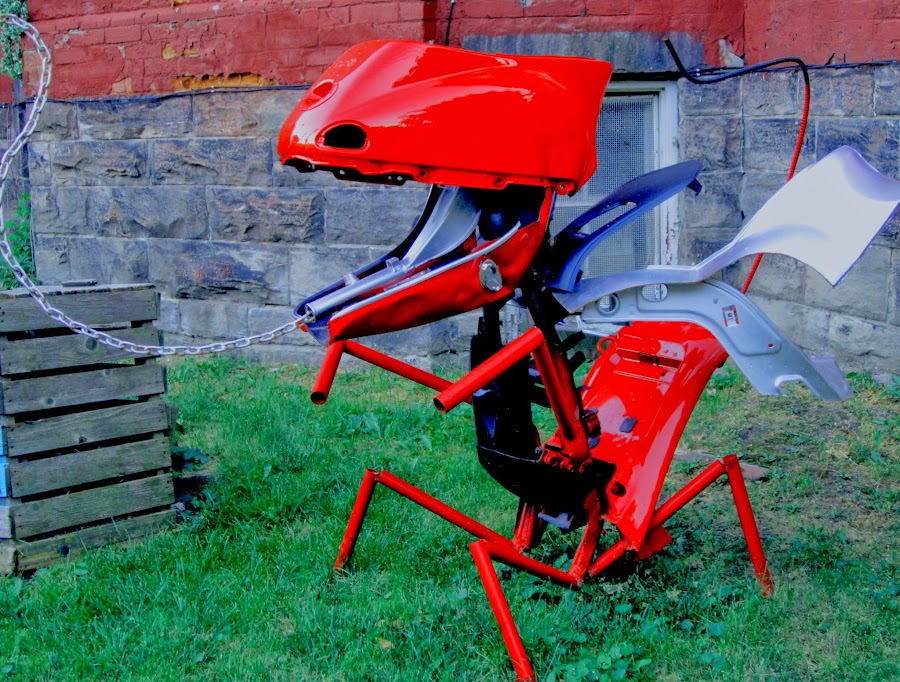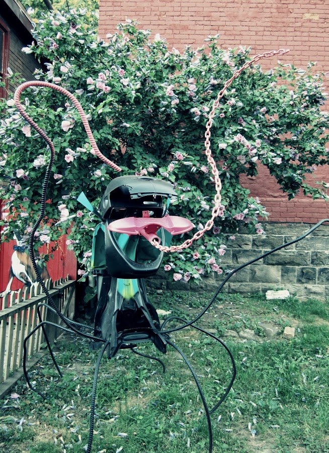 Obras de arte en el patio de una casa