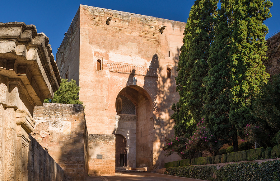 Ya has subido la Cuesta Gomárez, has visto la fuente de Carlos V y cruzando la Puerta de la Justicia estás dentro del recinto de la Alhambra. Este es el acceso de la época cristiana, el que a mi más me gusta y también el más turístico. Al entrar a la izquierda está la Puerta del Vino, que comunica la Plaza de los Aljibes con el resto de los palacios. Si rodeas la Alhambra y bajas por el acceso nazarí y la Cuesta de los Chinos cruzarás la Puerta de las Armas, la más antigua de todas las puertas de la Alhambra.