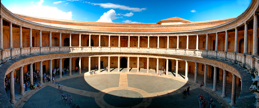 Es como un pegote renacentista que choca fuertemente con el conjunto arquitectónico nazarí. Es un edificio de planta cuadrada con un patio circular interior formado por columnas. En ciertos aspectos anticipa al estilo artístico del manierismo, que surgió en Italia tras la época del Renacimiento. Fue construido como la residencia del emperador Carlos V aunque no consta que llegase a habitarlo en ningún momento.