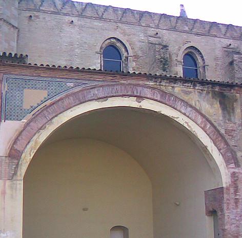 Pasamos por el Arco de Legos que nos lleva a la zona donde recidían los hermanos legos y estaba su comunidad, Además de tener las misiones propias de la orden tenían que atender a los monjes o sacerdotes y a las oraciones en las celdas dispuestas en torno al Claustrón. Hoy en día el Arco limita las dependencias del Cetro Andaluz de Arte Conteporáneo y la sede del Instituto Andaluz del Patrimonio Histórico.