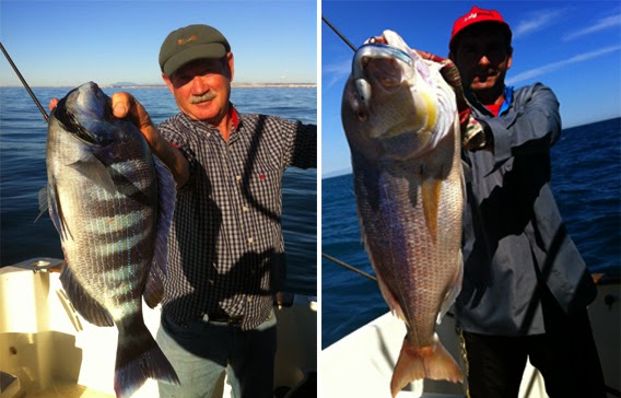 Junto a las chopas, es posible realizar capturas de cierta entidad. Arriba: pargo de 1 kg y Gallo Pedro de 2 kg, junto a varias chopas de más de 1 kg. Abajo: junto a chopas de tamaño medio y pequeño se consiguen algunos pargos y pageles.