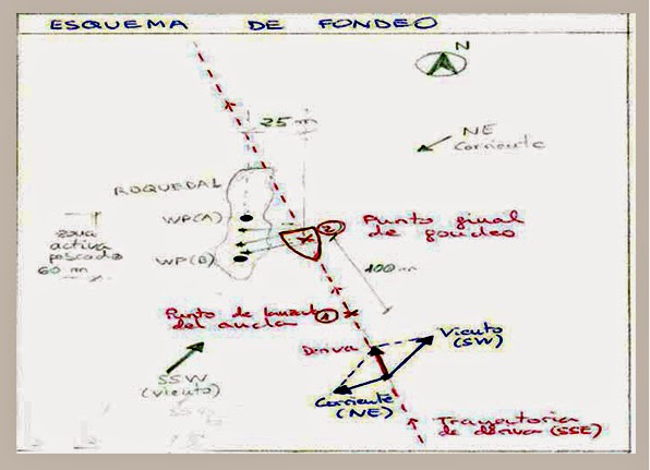 En este precioso día primaveral (con temperaturas aún un tanto frías para las fechas) nos dispusimos Manolo Ruiz, Andrés y yo a partir rumbo al pesquero que tantos frutos lleva dando desde hace ya más de un mes. ¡¡¡Parece increíble que todavía queden chopas ahí!!! Salimos a las 7:15, teniendo prevista una jornada corta (hasta las 12:30) puesto que teníamos compromisos familiares a mediodía. Una vez arrivado al waypoint fondeamos el barco teniendo en cuenta que quedara sobre la vertical de la piedra, pero ligeramente desplazado hacia el lado de donde venía la corriente, de forma que los aparejos cayesen sobre la misma por efecto de la corriente. Esto que parece tan sencillo decir resulta a veces casi imposible de materializar si ésta es demasiado intensa, pero afortunadamente hoy al primer intento conseguimos realizar la operación con precisión milimétrica, evitando así las "pejigueras" de tener que levantar el ancla a mas de cuarenta metros, con la consiguiente "espantada" que produce al pescado. Además, parte del éxito radica en las "manitas" de Manolo al regular la caída del "hierro", demorando la misma lo necesario para que la brisa nos derivara lo suficiente para alcanzar el punto deseado, al que cariñosamente llamamos "punto G", por razones obvias. "Solamente" es cuestión de tirar el ancla en el momento y lugar oportuno, calculando la deriva causada por efecto de viento y corriente, y hacer por que el hierro enganche en el fondo en el momento preciso para dejar el barco sobre el lugar calculado previamente.