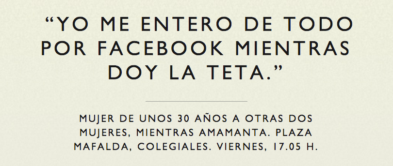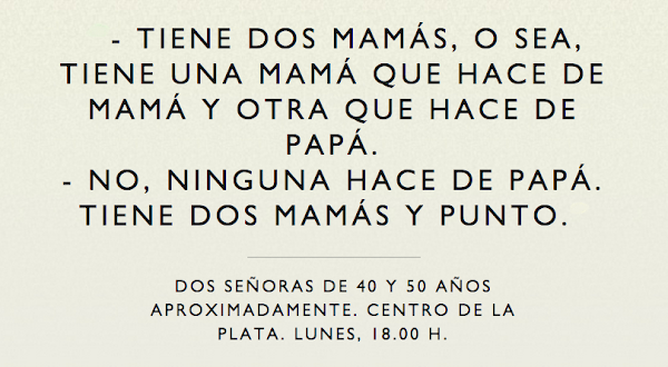 Un espacio online llamado La gente anda diciendo, que ya ha tomado forma de libro y cuyos autores son Tatiana Goldman y Ezequiel Mandelbaum. Una recopilación de fragmentos de conversaciones que escuchan por la calle, frases sueltas, a veces inconclusas y casi siempre fuera de contexto.