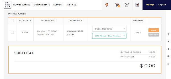 My Mall Box es una empresa de envíos que trabaja de forma similar a los apartados de Correos tan conocidos aquí en España, con esta web podrás tener un buzón donde recibir tus pedidos o cajitas de suscripción de EEUU y mandarlo a cualquier país del mundo. Si tenemos en cuenta que el apartado de correos en España tiene un coste trimestral aproximado de 24,79€ y My Mall Box es gratuita, sólo tienen coste los envíos que hagas desde el buzón hasta tu casa, pero no el alquiler del buzón en sí por lo que está muy bien, sobre todo porque la gran mayoría de webs de EEUU no envían a España y muchos colecciones de productos de marcas famosas de cosmética y/o maquillaje son ediciones limitadas que no llegan a nuestro país por lo que conseguirlas suele ser una odisea.