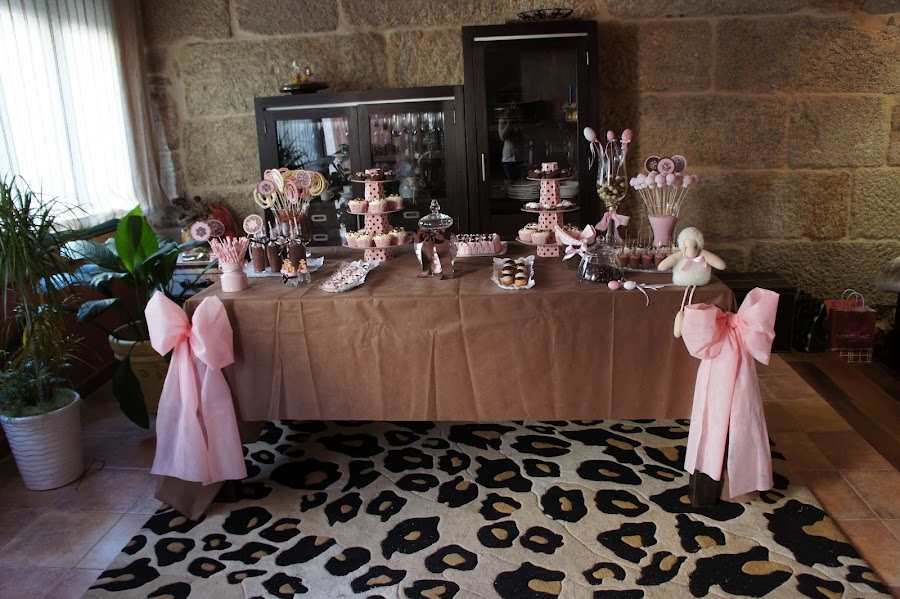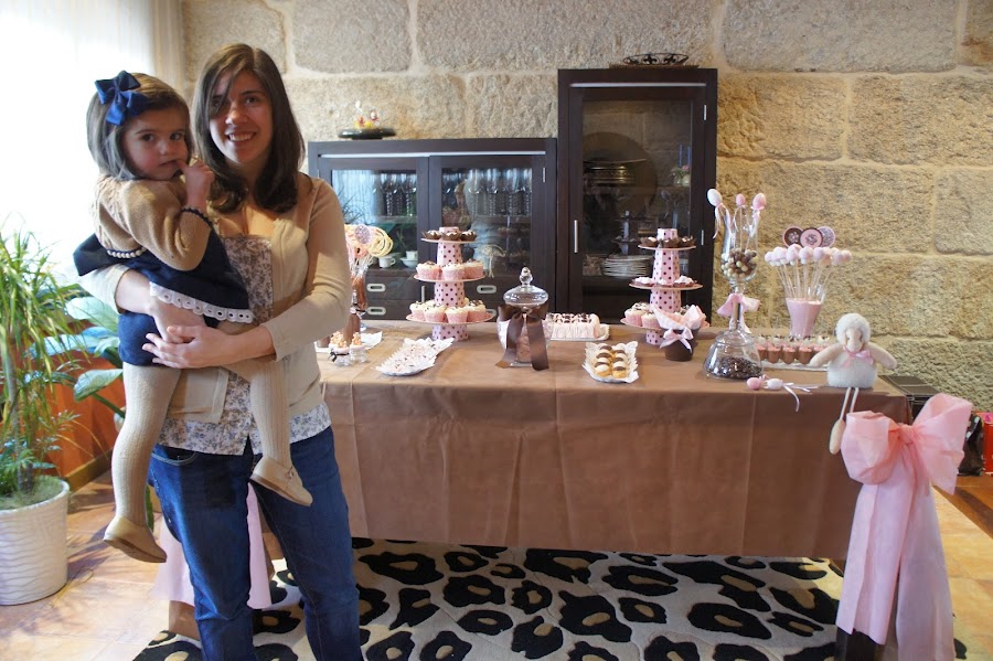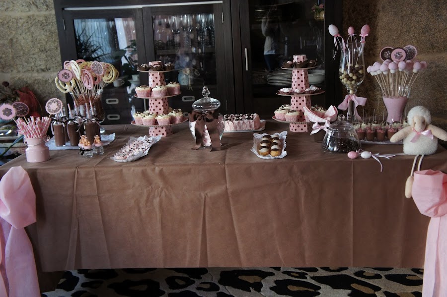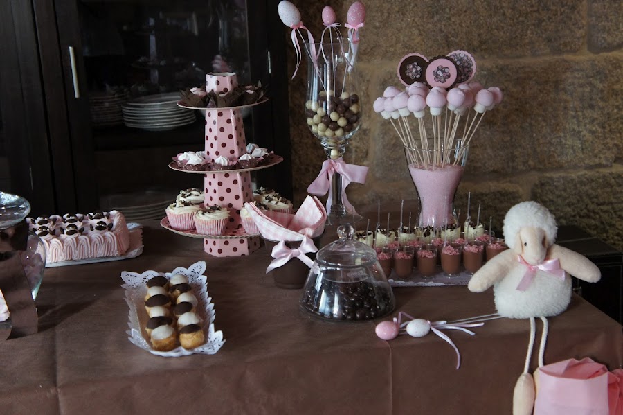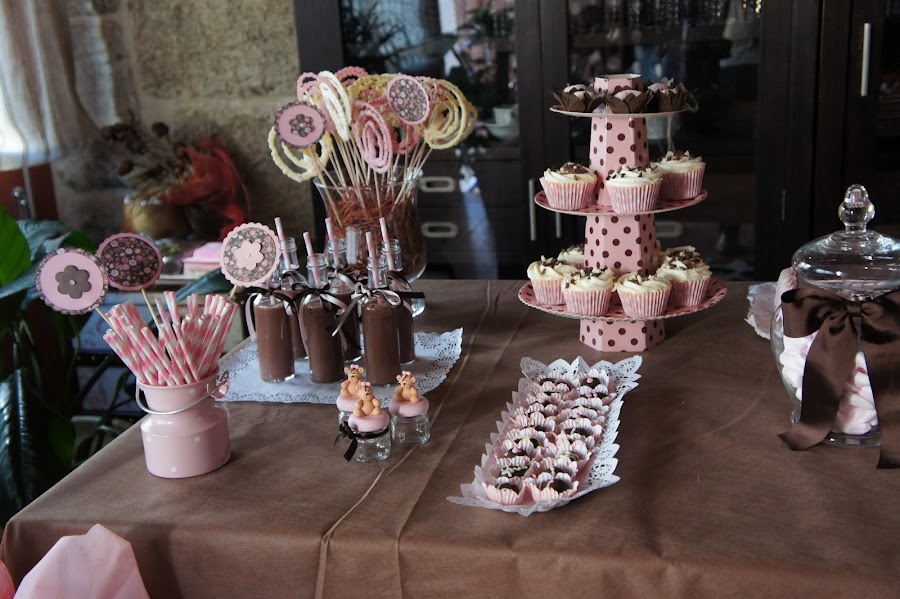 Lo primero que decidimos fueron los colores: rosa, blanco y chocolate. El rosa y el blanco eran muy apropiados para una niña de dos añitos, y el chocolate combina muy bien con los demás colores y da mucho juego con los dulces.