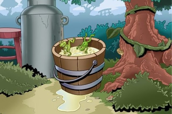 No importa, respondió la otra ranita. No podemos hacer otra cosa que nadar. Nada y no te lamentes. Conserva tus fuerzas.