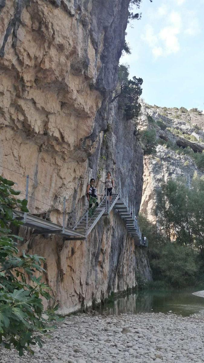 Nosotras elegimos hacer las pasarelas de Alquézar o pasarelas del río Vero. El recorrido son aproximadamente unas dos horas, te puedes parar en diferentes tramos para bañarte, comer….y pasar el días. El acceso es gratuito y te recomiendan utilizar cascos por si hubiera algún desprendimiento de roca (nosotras no lo llevamos)