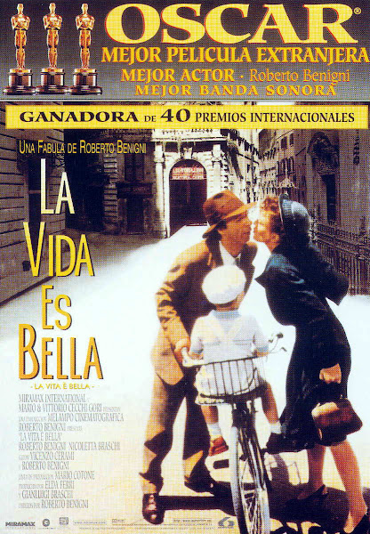 Técnicamente “La vida es bella”, nos os vamos a engañar, es una película maravillosa, una de esas películas que todo el mundo debería ver, como mínimo, una vez en la vida, con un hilo argumental ambientado en el Holocausto vivido durante la Segunda Guerra Mundial en Europa, relatando su dureza pero mezclando este relato con la potente historia de amor que vive la familia protagonista y el histriónico sentido del humor que guía la vida de Guido y a la vez la de su familia durante su periplo por los oscuros años de la ocupación nazi de Italia. También muy remarcable, la célebre banda sonora que acompaña perfectamente la acción en cada secuencia.