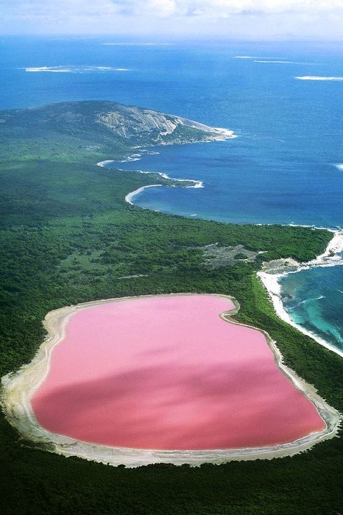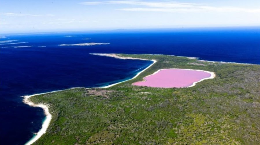 CURIOSO LAGO ROSA CHICLE EN EL ARCHIPIÉLAGO DE LA RECHECHE, AUSTRALIA OCCIDENTAL.
