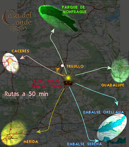 Ya Que Estas en el Corazón de Extremadura, SE ENCUENTRA en 40 Minutos baño Cáceres, Trujillo, Mérida y Guadalupe, en el Parque Natural de Monfragüe, o Para Los embalses.