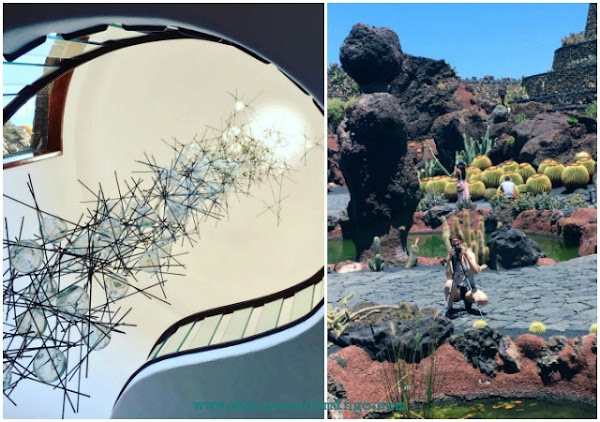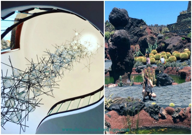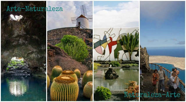 Arte-naturaleza/Naturaleza-arte, una nueva ideología estética que terminó concretando en intervenciones y espacios públicos que si visitas la isla te aconsejo no dejes pasar. Buen ejemplo de ello son (de izquierda a derecha) los Jameos del Agua, el Jardín de Cáctus, su vivienda en Tahíche (actual sede de la Fundación César Manrique) y el Mirador del Río entre otras.