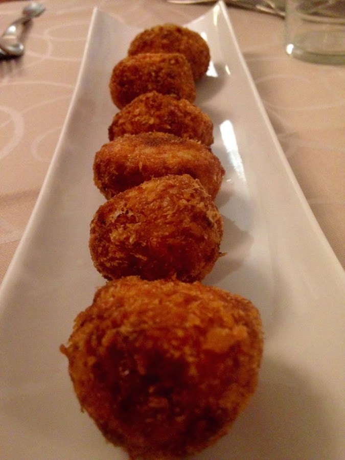 Pedimos varios entrantes que os detallo a continuación. En primer lugar unas croquetas de gamba roja y otras de puchero: