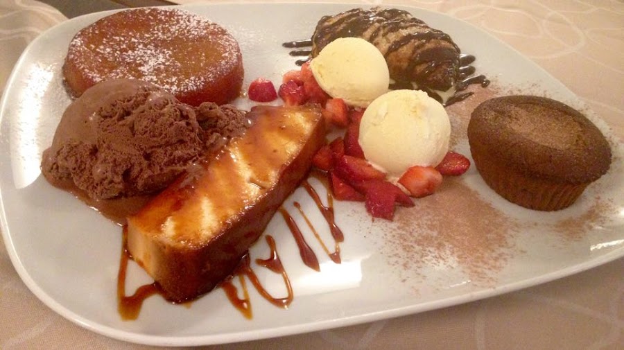 La comida la regamos con un cava Mascaró del cual no pude ni hacer foto...jajaja. Y para acabar pedimos un surtido de postres, entre los que se encontraban su famoso hojaldre de pera y chocolate, tatín de manzana, coulant de chocolate, helado...¡la bomba!