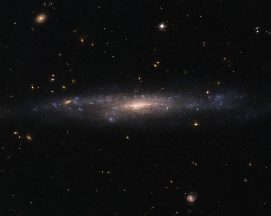 https://www.nasa.gov/image-feature/goddard/2016/hubble-sees-galaxy-hiding-in-the-night-sky En la imagen vemos la galaxia UGC 447, ubicada a 110 millones de años luz de distancia en la constelación de Piscis. Los investigadores creen que galaxias como estas, están compuestas principalmente de materia oscura, lo que las hace blanco principal para futuras investigaciones.